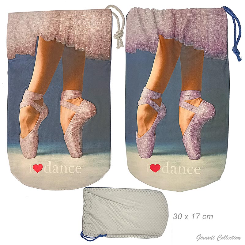 Meraviglioso sacchettino portapunte e scarpette con glitter in 3D.